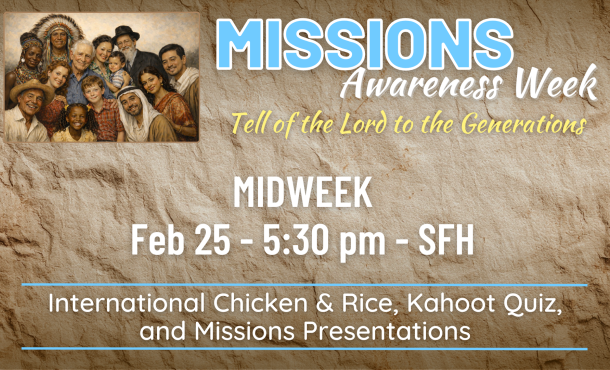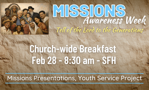 We are excited about our upcoming Missions Awareness Week. Please mark your calendars and plan...
