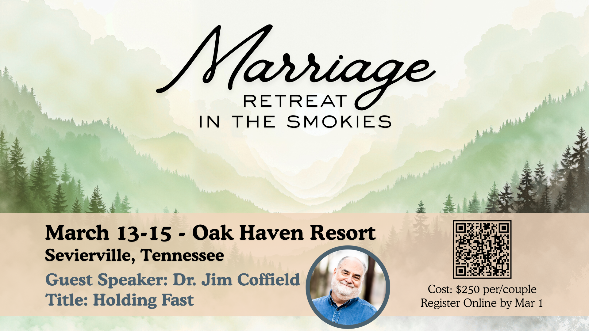 We are looking forward to a wonderful time of refreshment and rejuvenation at our 2026 Marriage Retreat in the Smokies. We will be lodging at the Oak Haven Resort in Sevierville, TN.