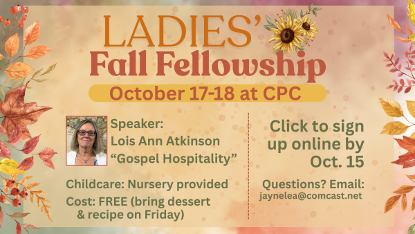 Please visit our church calendar page to view upcoming church-wide events. Specific women's events will be listed here as they are scheduled.