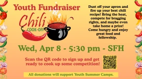 Dust off your apron and fire up your best chili recipe! It’s time for our Church-Wide Chili Cookoff! Bring the heat, compete for bragging rights, and maybe even take home...