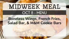 Make plans to join us in Room 100 (SFH) at 5:30 pm. MENU: Boneless Wings, French Fries, Salad Bar, and M&M Cookie Bars There is a collection box on the wall in...