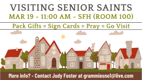 Everyone is warmly invited to join us as we visit our senior saints who are unable to attend church regularly. We go out in pairs, with each pair visiting two seniors. We will...