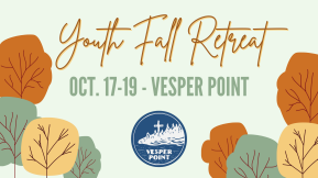 SCROLL DOWN TO REGISTER BY OCTOBER 8 We're excited about the Youth Fall Retreat at Camp Vesper Point and hope you can join us for a great weekend! We will spend the...