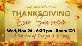 If you are in town with family during the Thanksgiving holiday, we would love for you and your family to join us for a special time of prayer and singing at 6:30 pm...